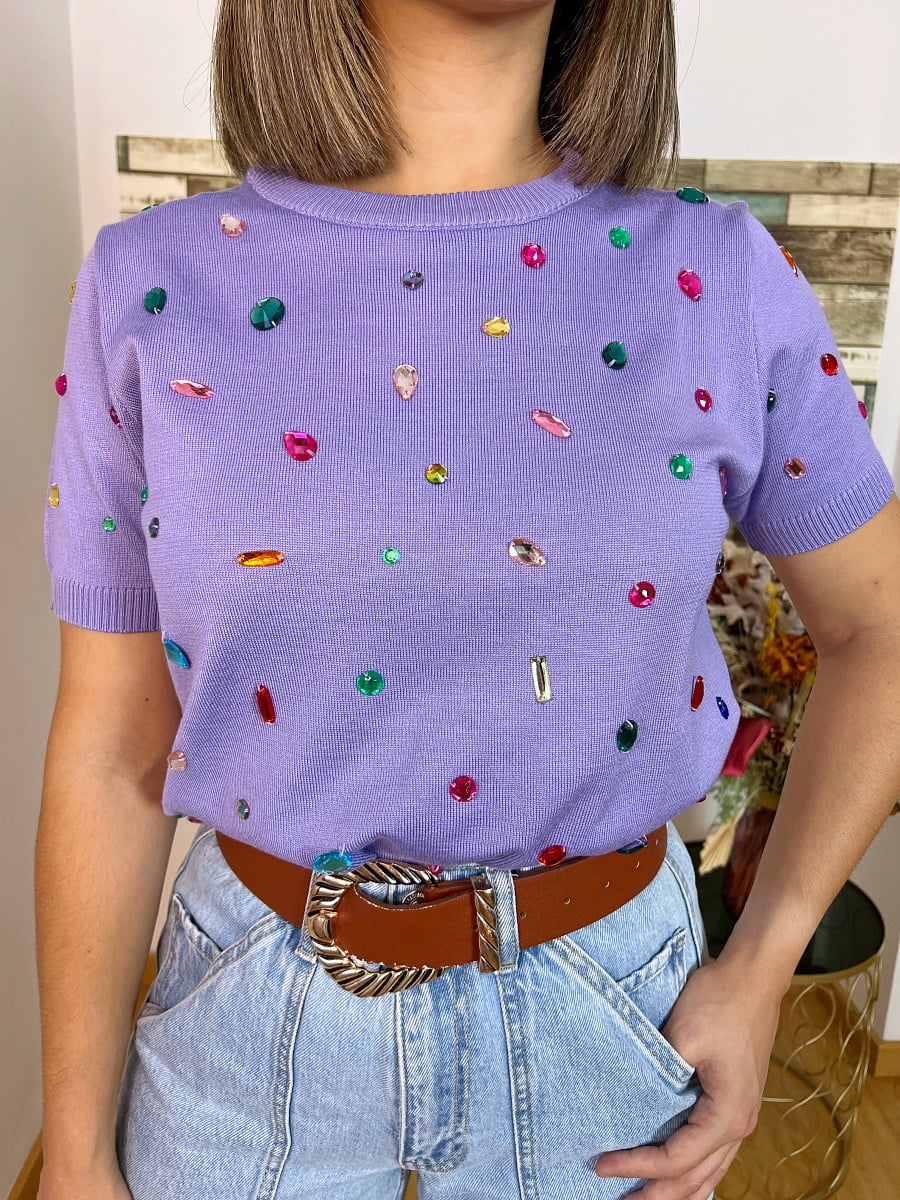 Camiseta Diamantes de manga corta y cuello redondo. Esta camiseta es el complemento perfecto para cualquier outfit gracias a su diseño sencillo y elegante. El tejido suave de viscosa (100%) proporciona una sensación de confort y ajuste perfecto a tu cuerpo.