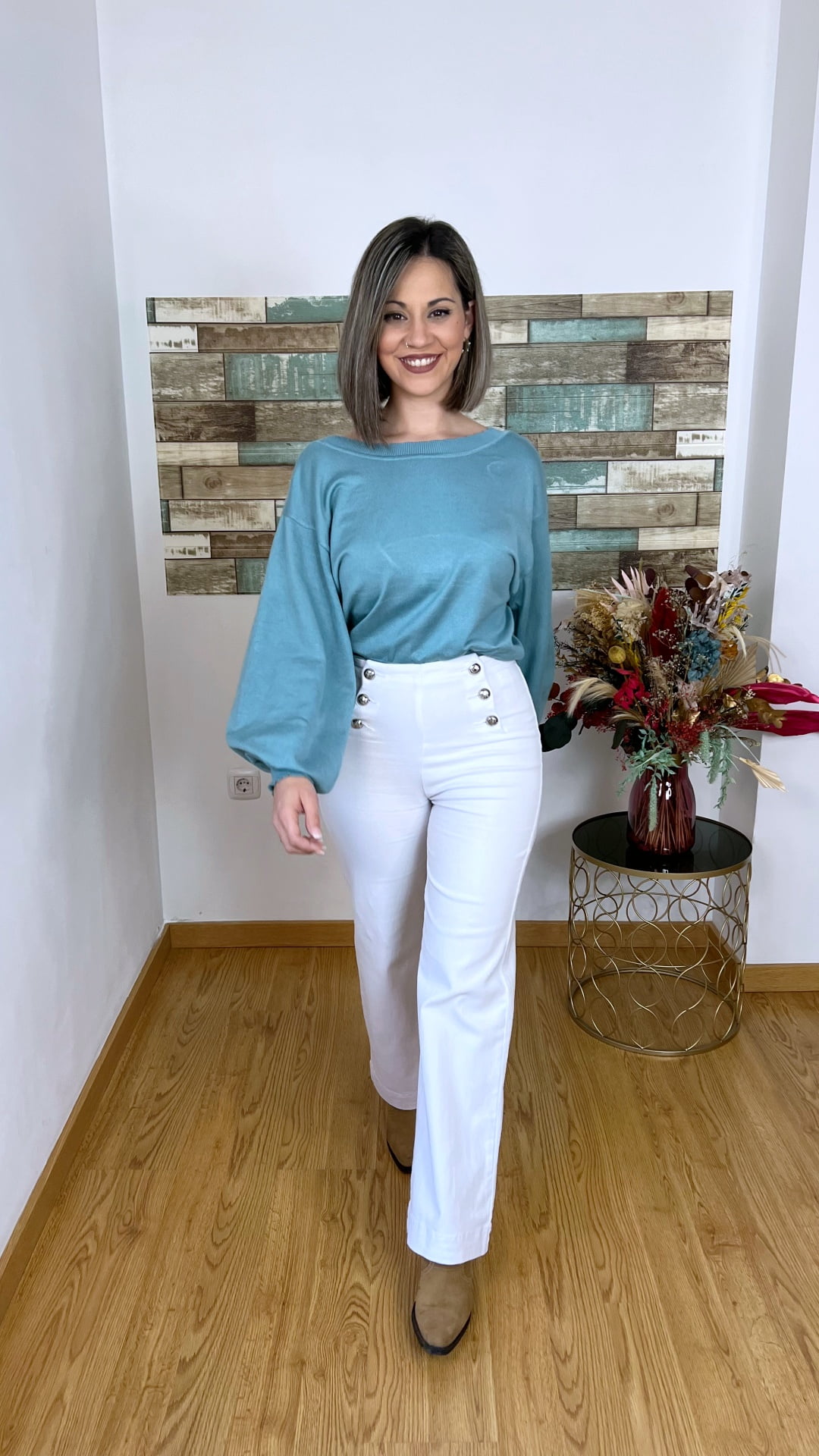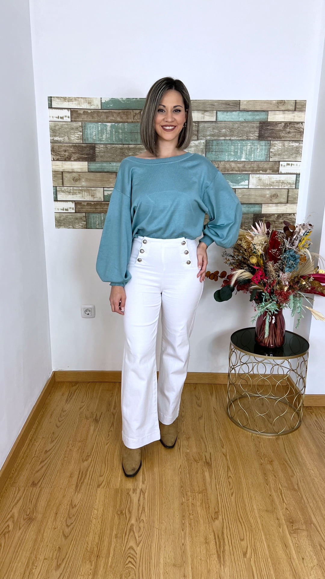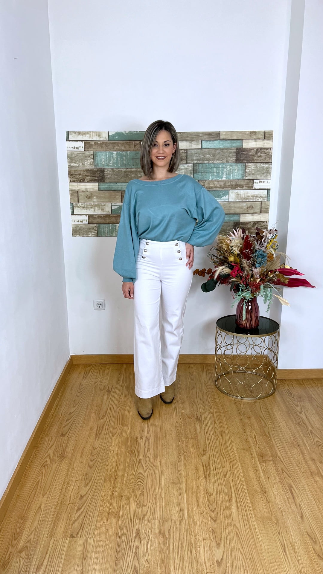 Jersey Lazada es un jersey de punto fino, hombro caído, mangas largas con cuello redondo, espalda descubierta con lazada en encaje, tejido muy suave. 90% Viscosa 10% Elástico